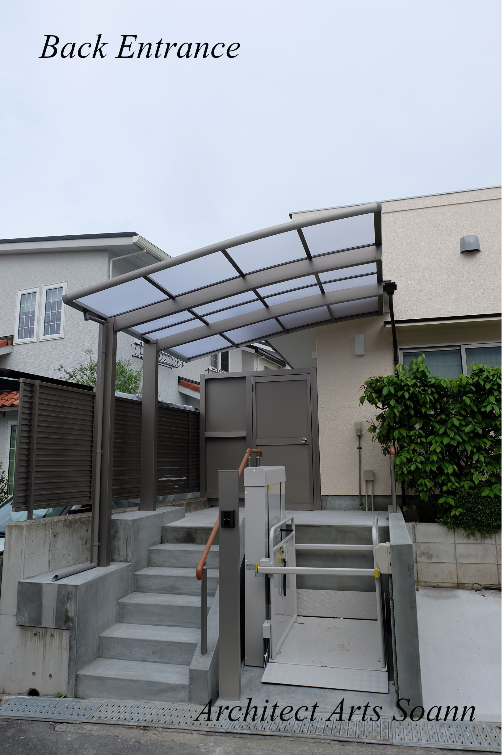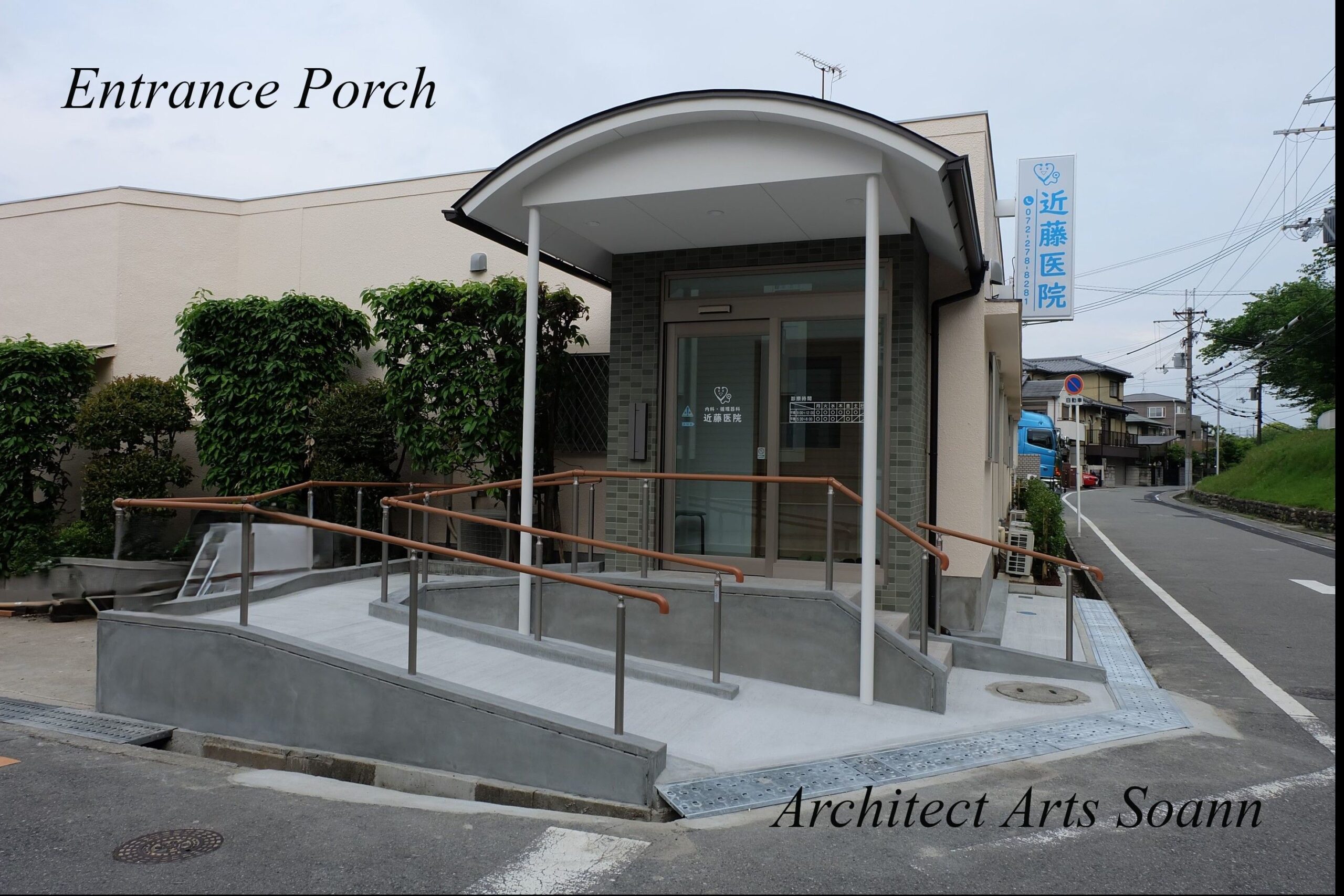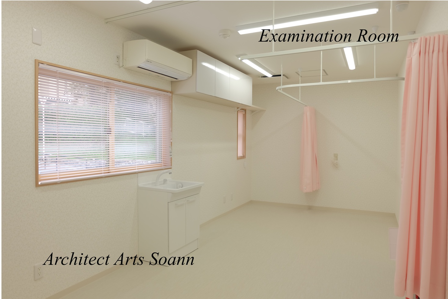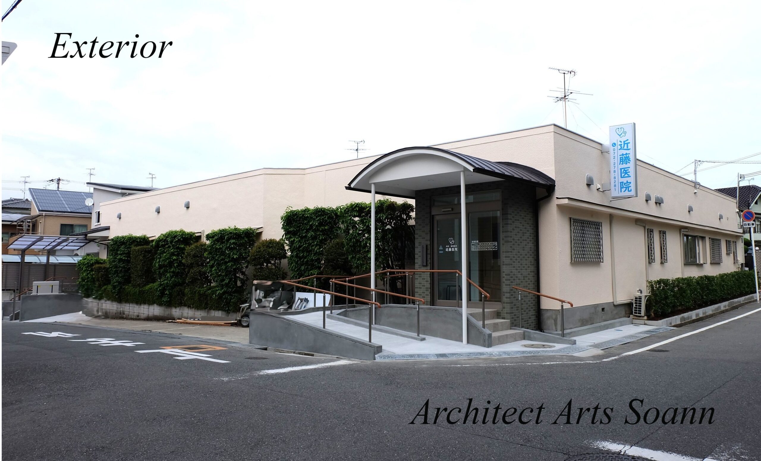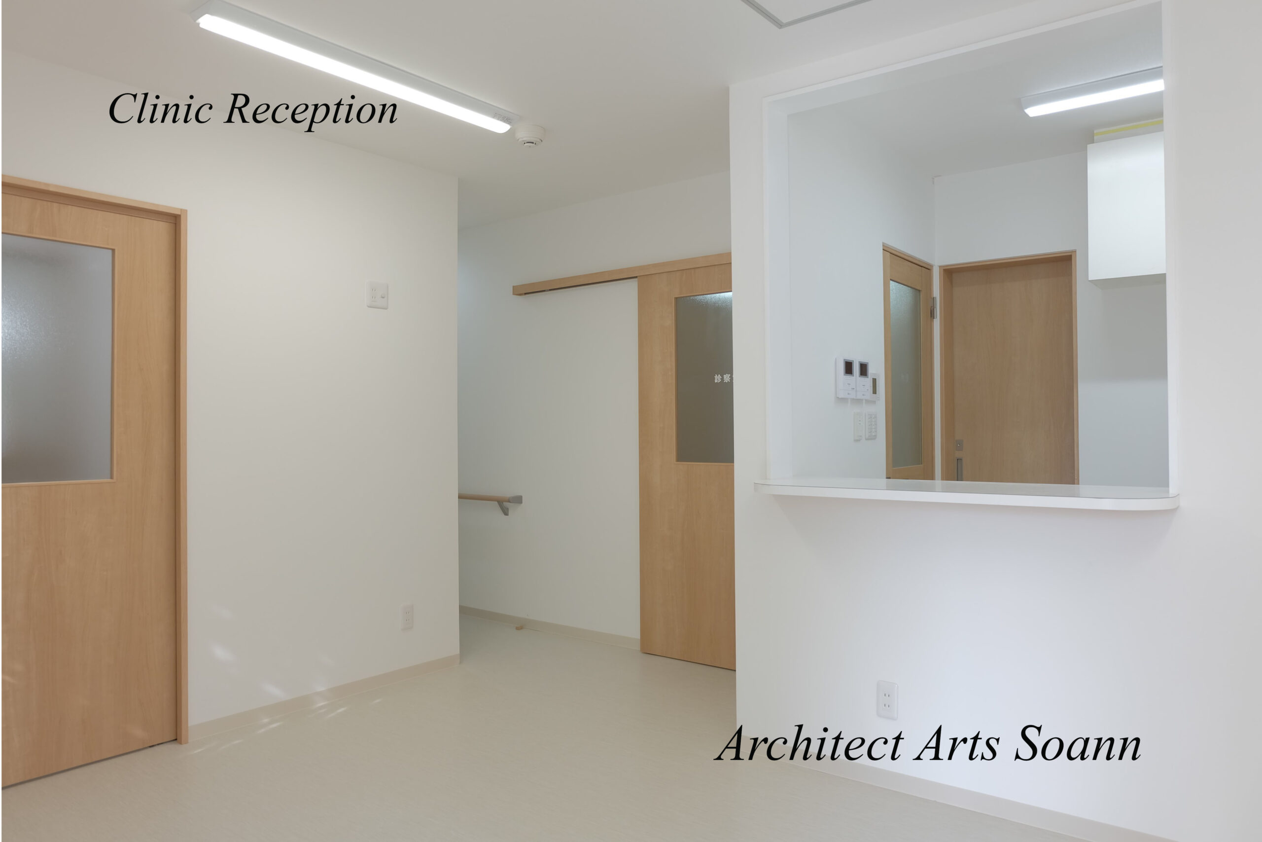 外壁の色はそのままに、正玄関は車椅子の患者さまの来院がしやすくなるようにスロープを設置しました。 また、昨今のインフルエンザ等の感染の患者さまにも対応し易いように、キャノピー(庇)のある裏玄関を設けました。 クリニックの内装は全面改装を行い、清潔感あふれる優しい色合いとし、看護動線にも配慮した設計となっています。